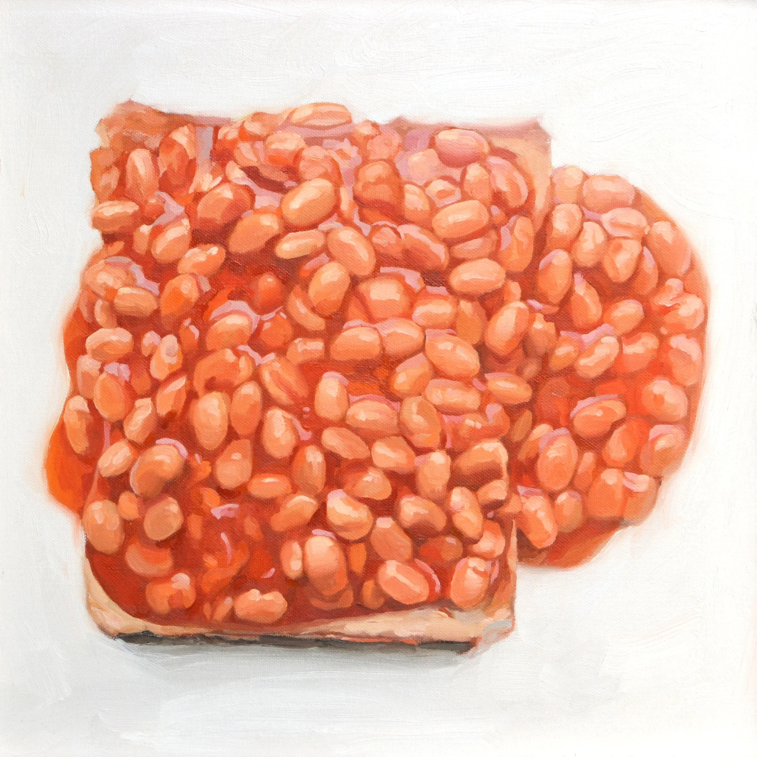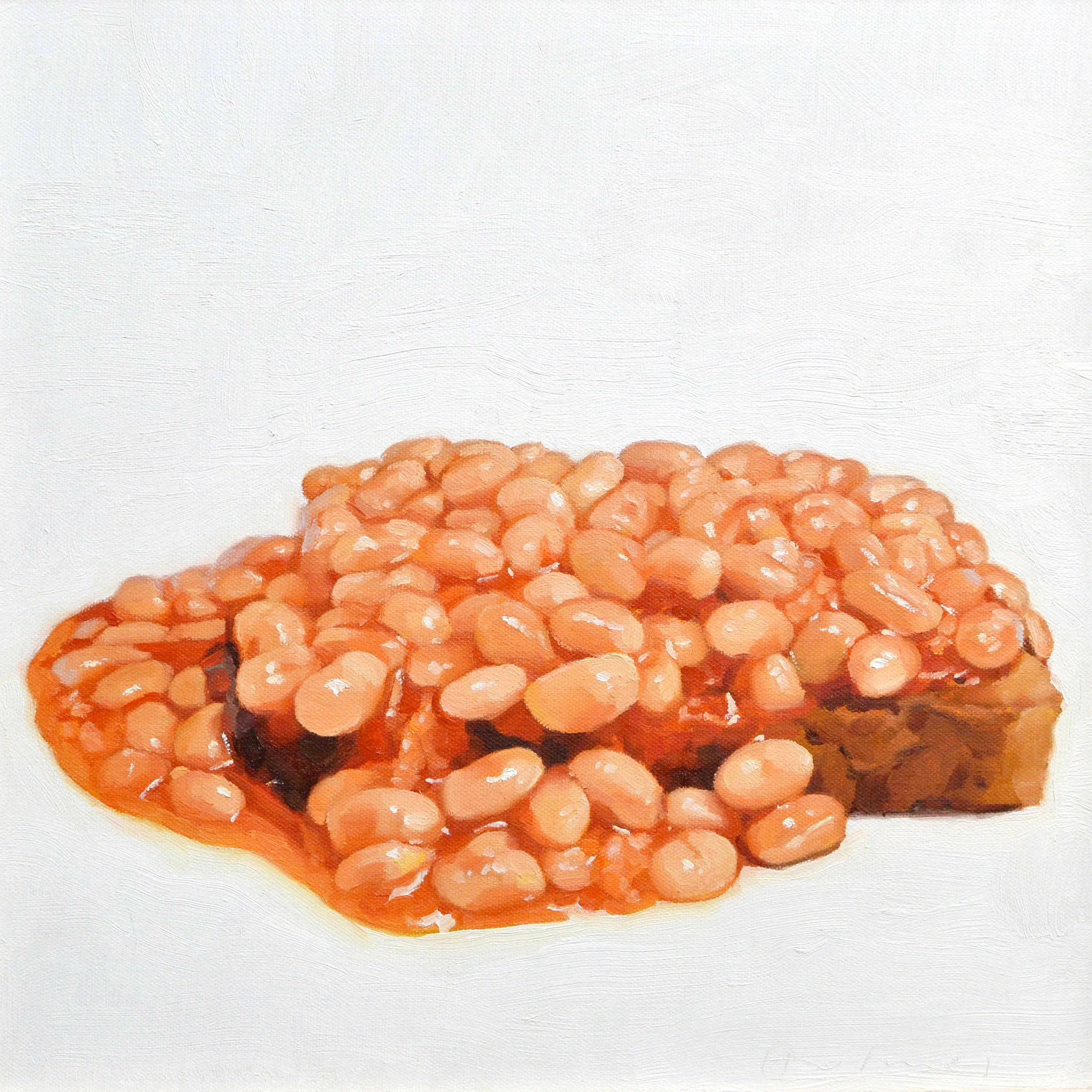 baked beans on toast, 2014, oil on canvas, 40 x 40cm / 16 x 16 inches.