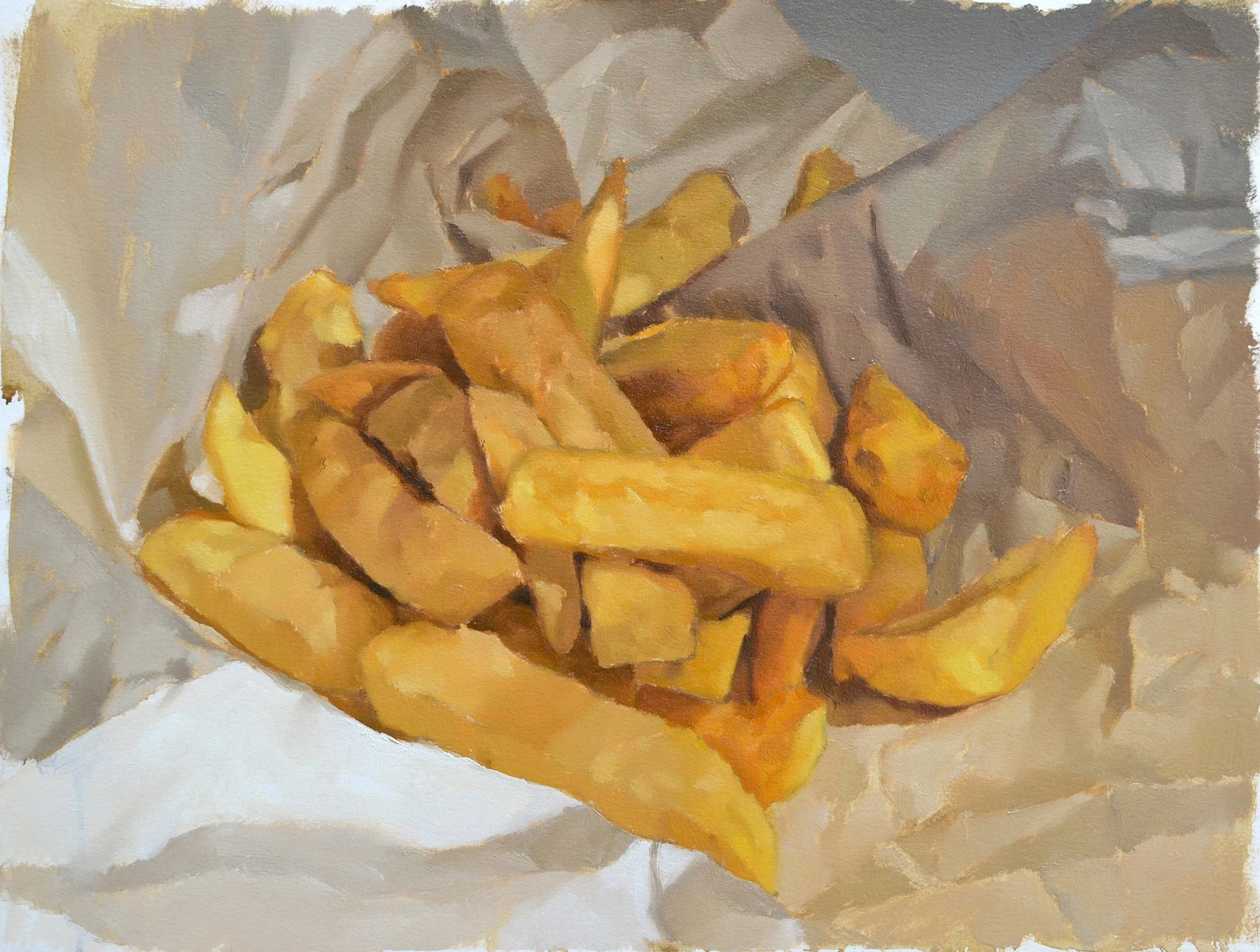 huddle of chips, 2017, oil on paper, 41 x 31cm / 12 x 16 inches.
