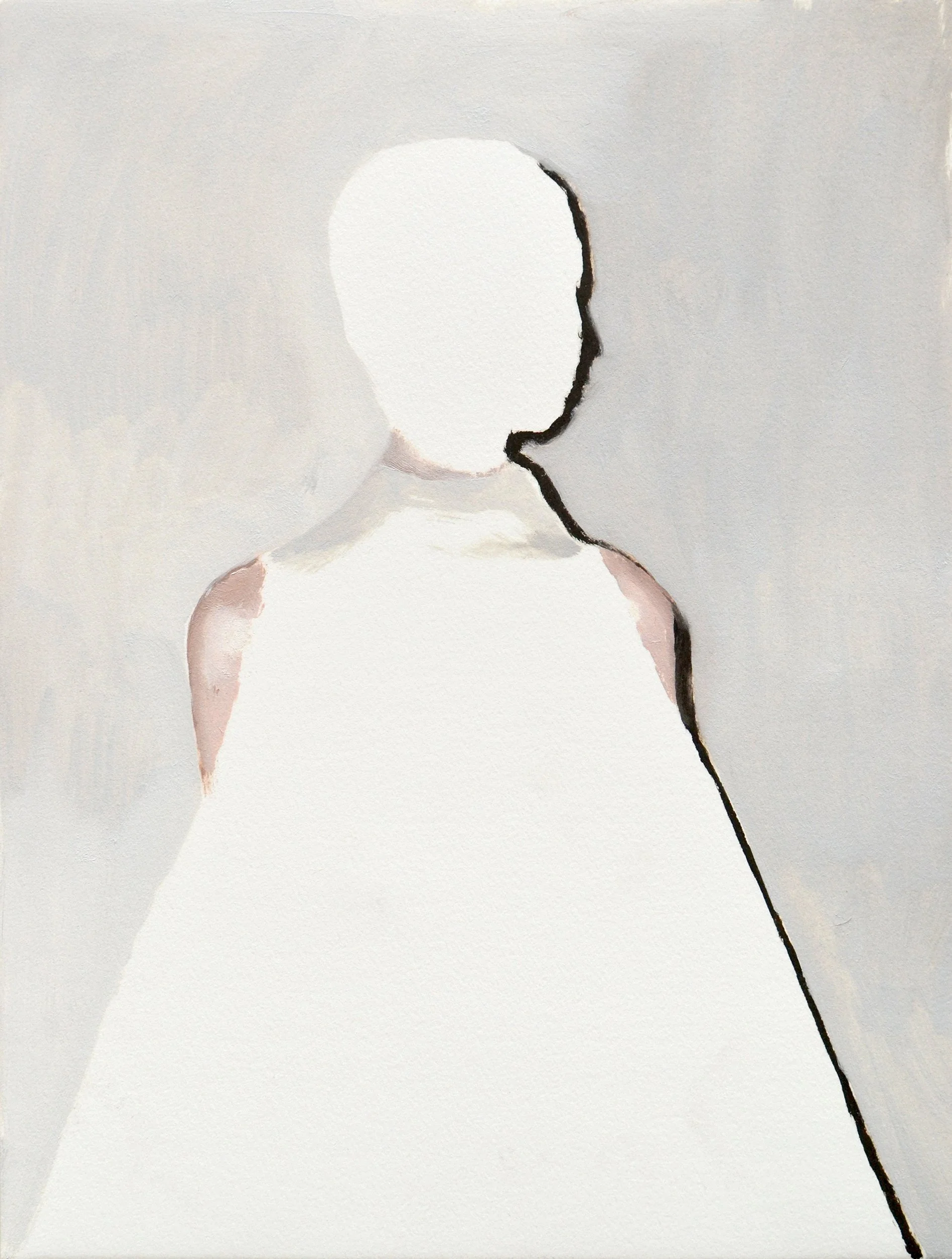 untitled AP12 (blank head & white dress), 2016, oil on paper, 41 x 31cm / 16 x 12 inches.