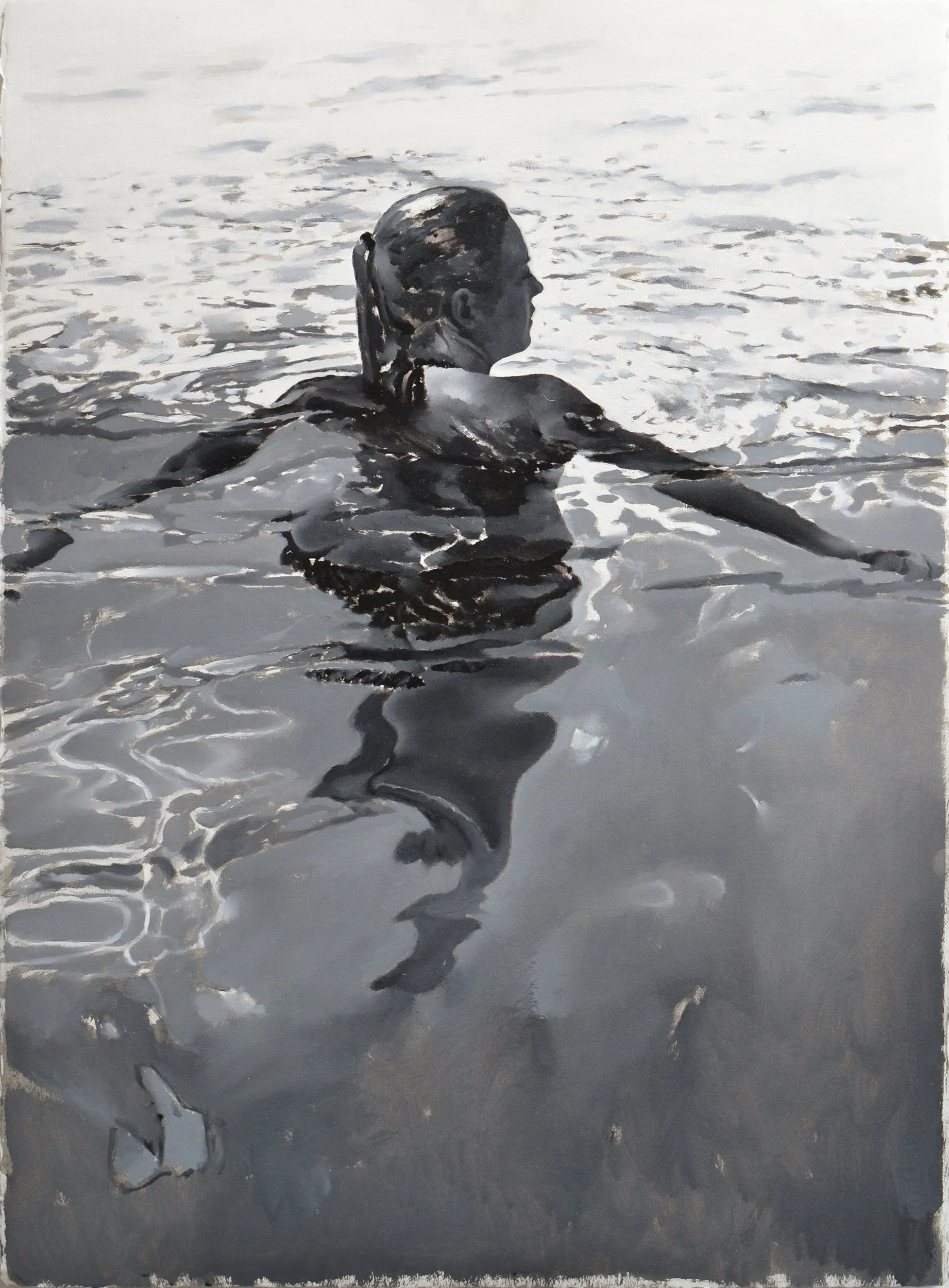 Em bathing, 2015, oil on panel, 40 x 50cm / 16 x 20 inches.
