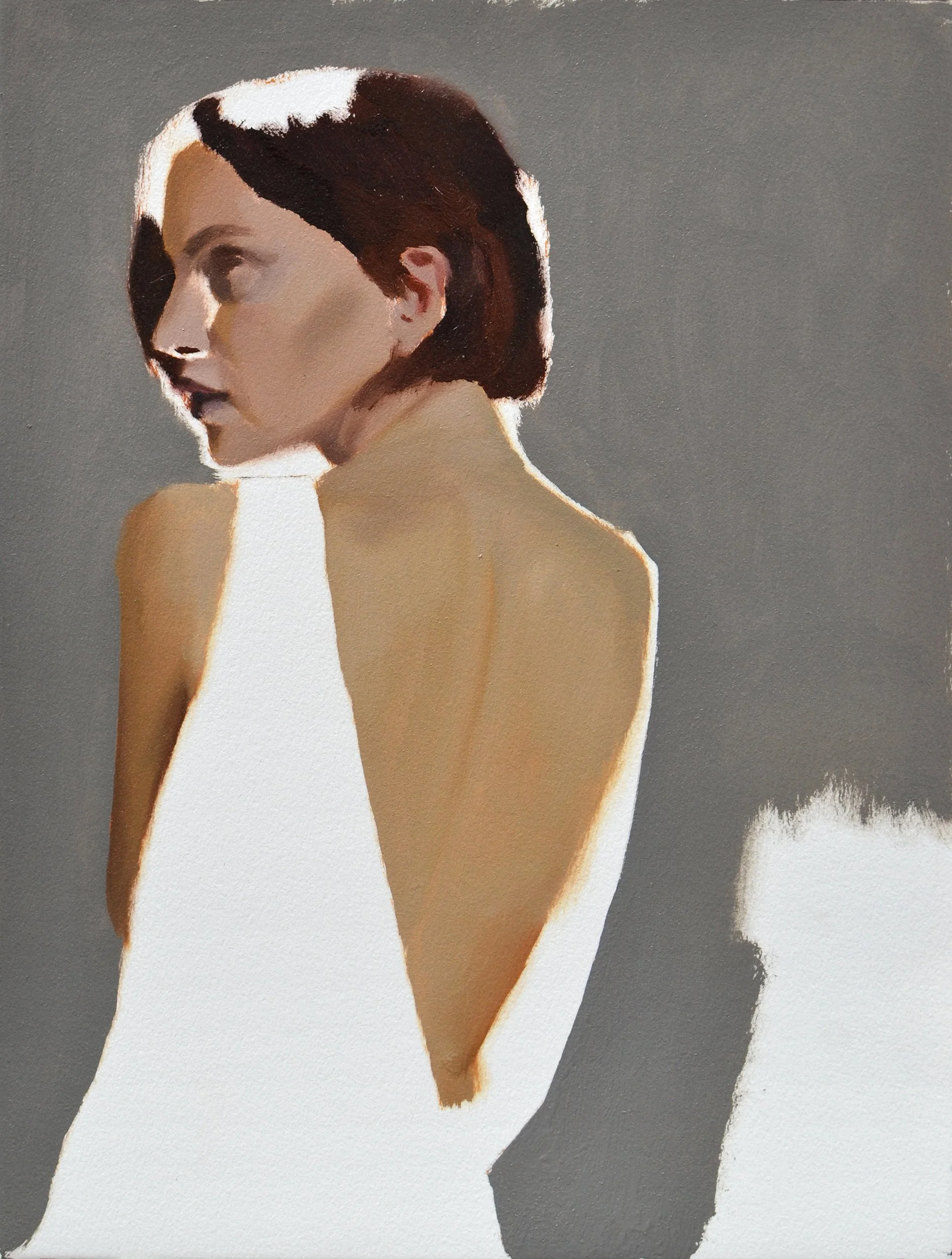 untitled AP02 (woman in white dress), 2016 oil on paper, 41 x 31cm / 16 x 12 inches.
