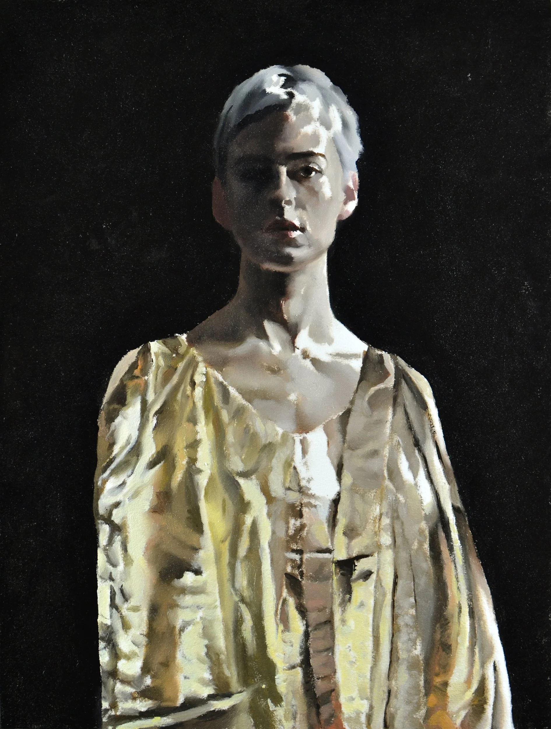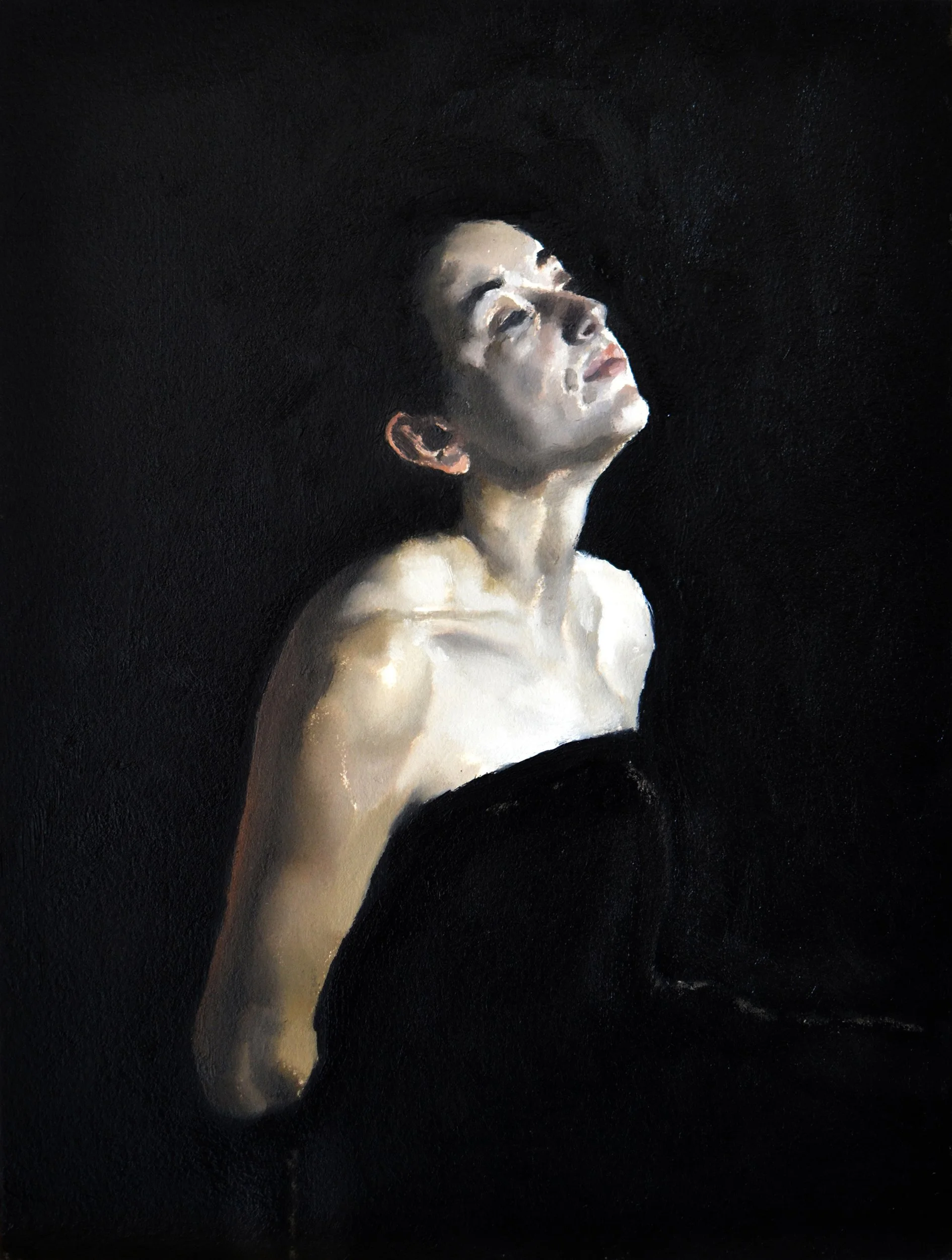 girl in black dress, 2015-2018, oil on panel, 60 x 50cm / 23½ x 19¾ inches.