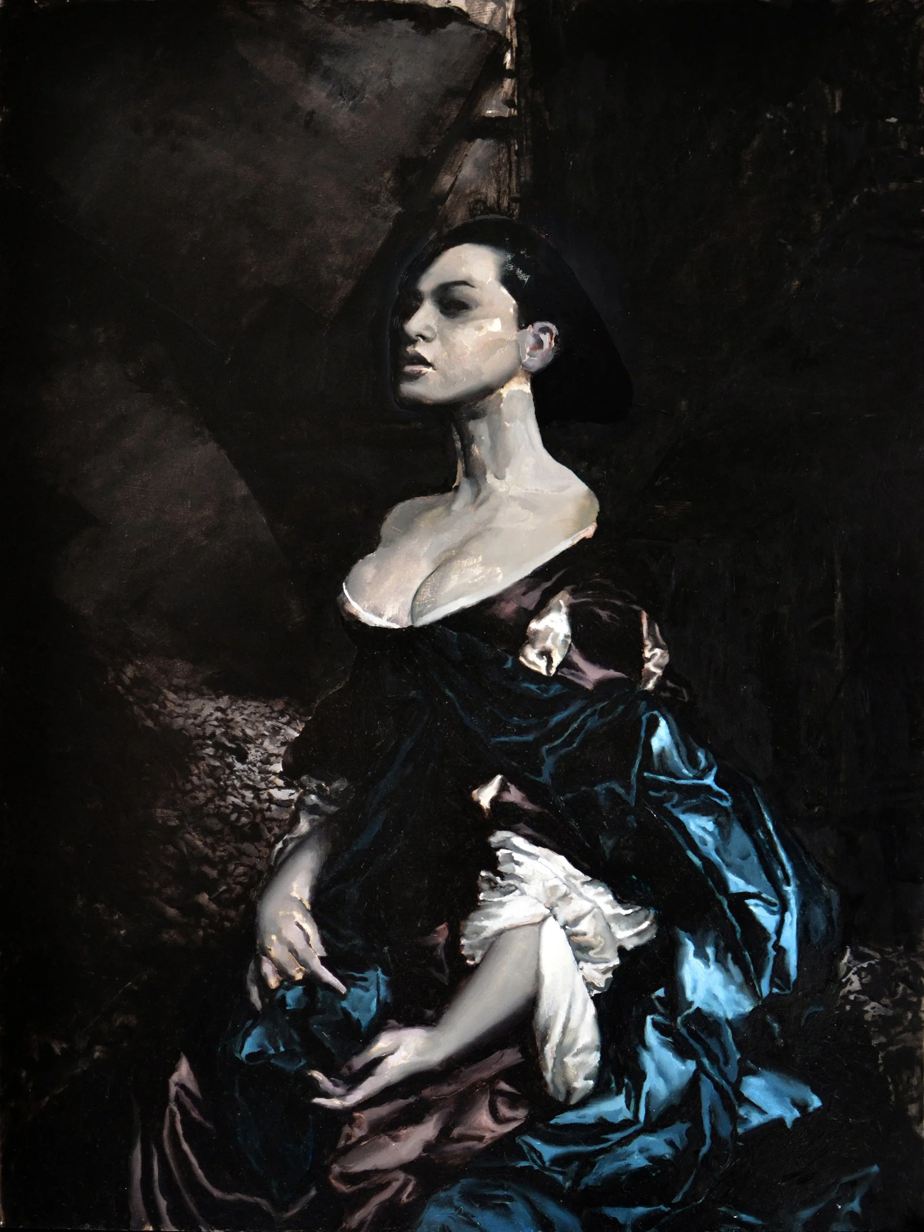 Mia (after Lely), 2017, oil on panel, 80 x 60cm / 31½ x 23½ inches.