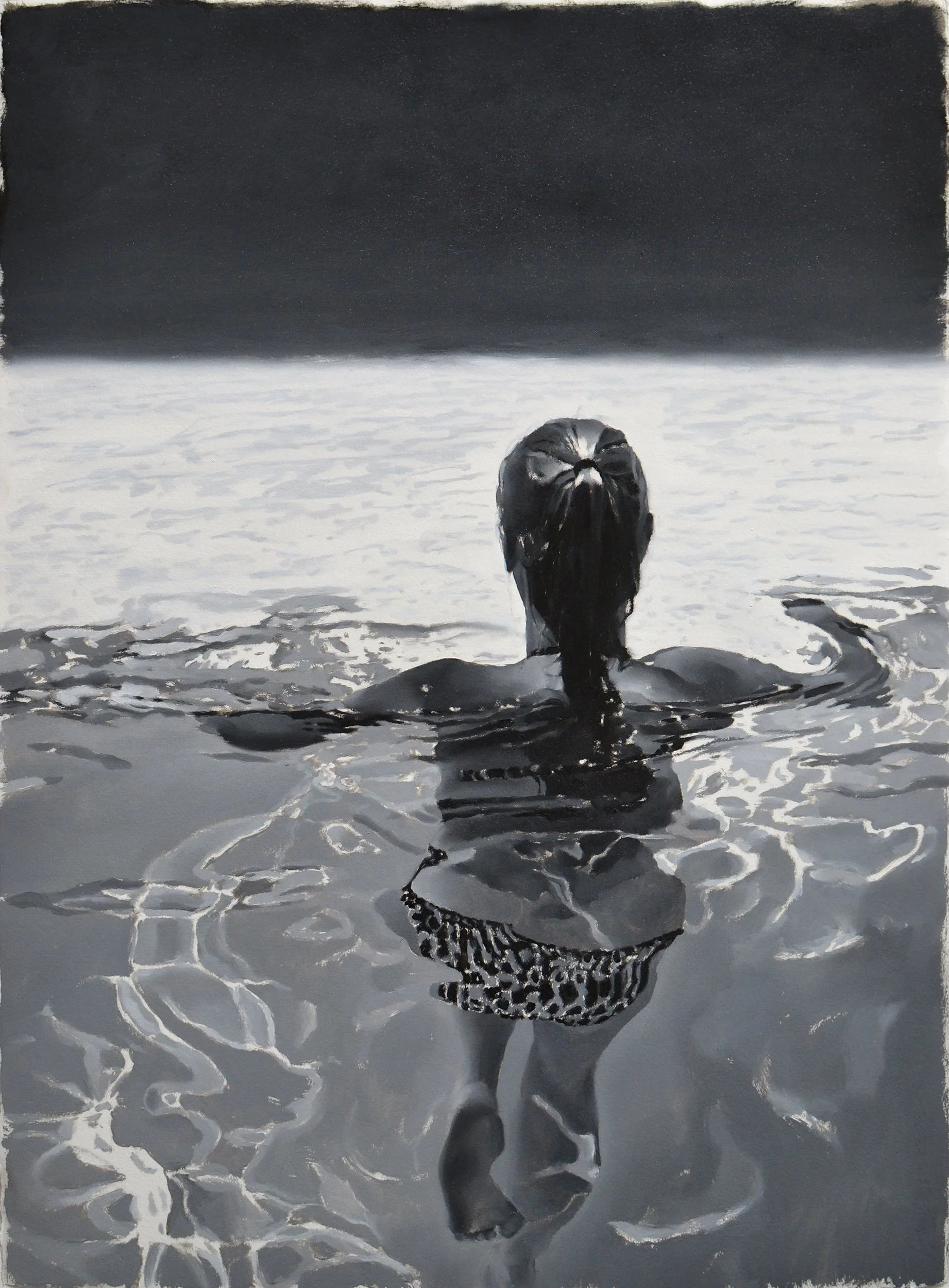 rock pool bather, 2016, oil on panel, 40 x 50cm / 15¾ x 19¾ inches.
